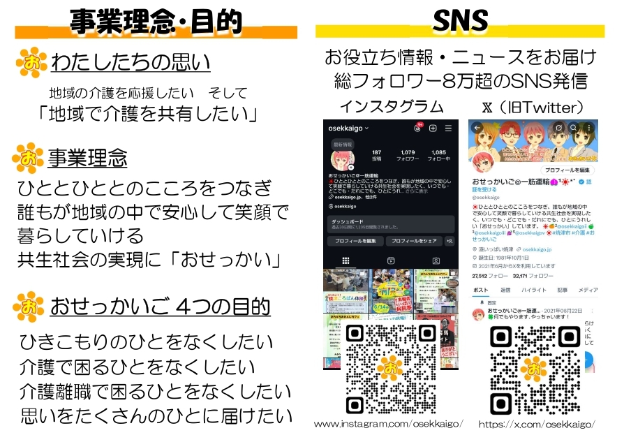 介護施設やサービスの検索、地域の介護関連イベントやニュースの提供、そして介護に関するお役立ち情報やブログ記事やSNS【X(旧Twitter)やInstagram等】で掲載してます。